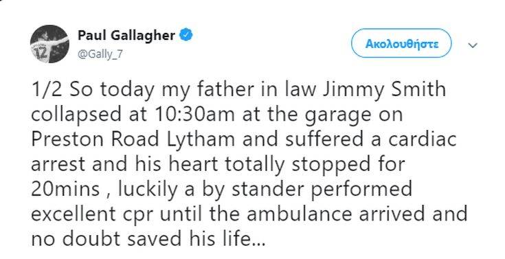 Αντιμέτωπος με τον θάνατο βρέθηκε ένας άνδρας στο Λάνκασαϊρ της Αγγλίας, καθώς η καρδιά του σταμάτησε