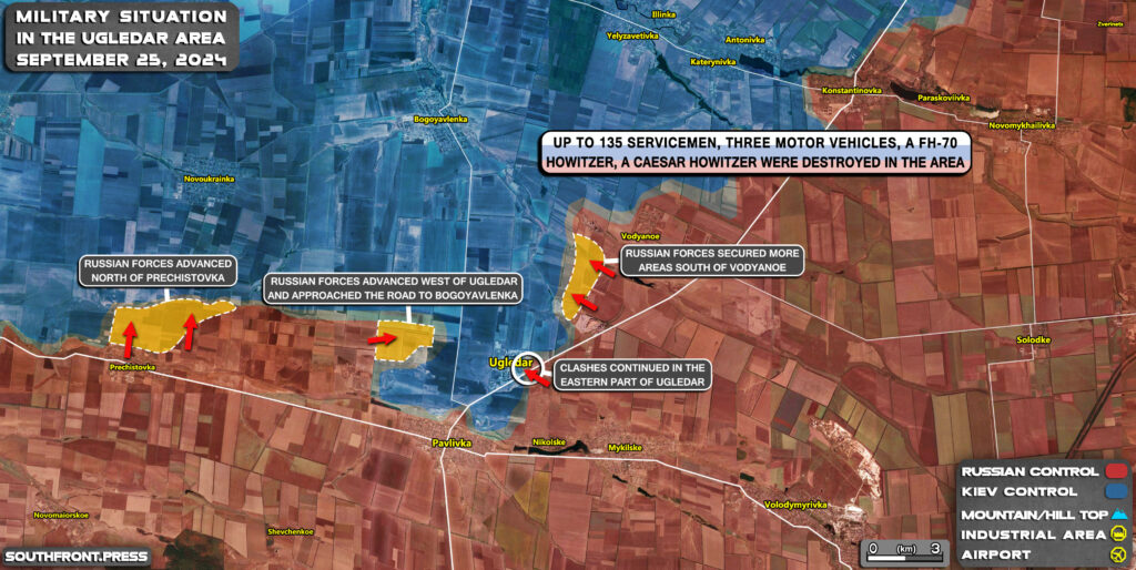 Προέλασαν επίσης νοτιότερα του Selydove, ανατολικά του Zhelanne Druhe και κοντά στο Nevelske και το Ukrainsk.