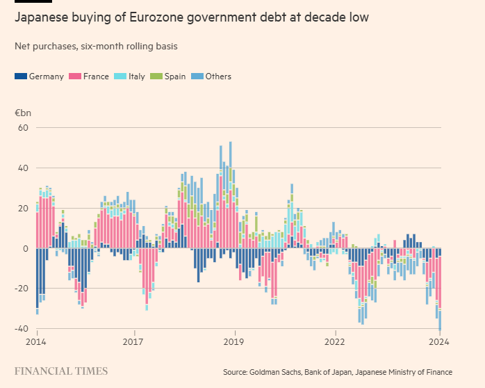 Αν και οι Ιάπωνες ήταν πωλητές ομολόγων της Ευρωζώνης για πολλά από τα προηγούμενα χρόνια, ο ρυθμός έχει ανέβει τους πρηγούμενους μήνες.
