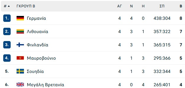 16:30 Λιθουανία – Μαυροβούνιο 94-67